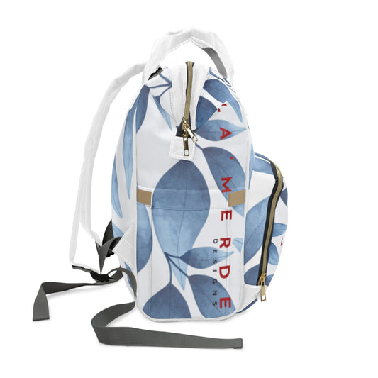 Multifunctional Backpack: Watercolor Blue Leaf Seaweed