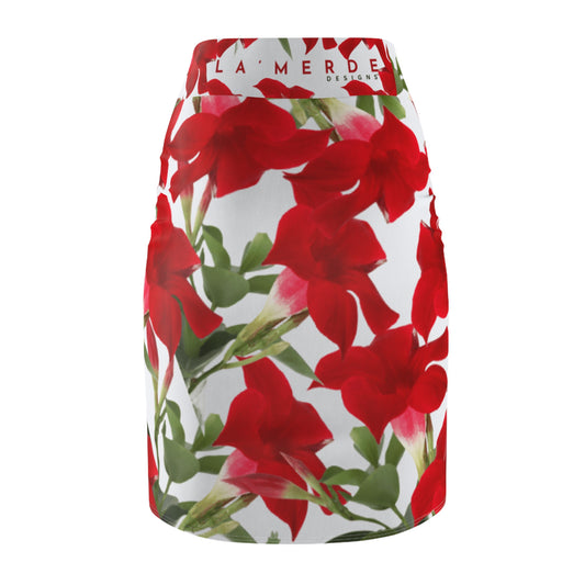 Pencil Skirt: Brilliant Red Tropical Hibiscus