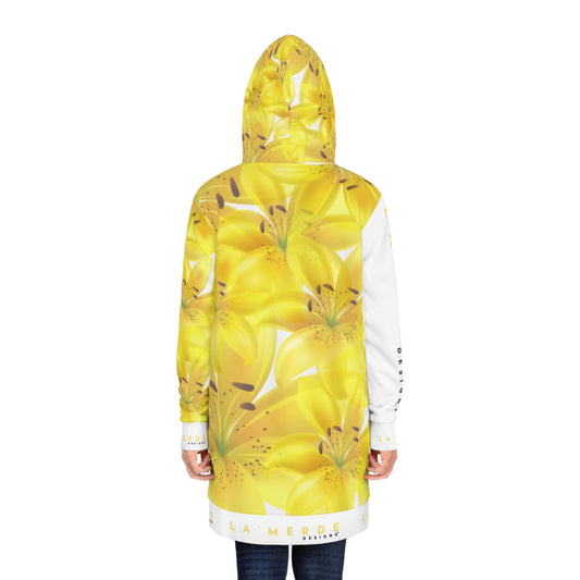 Long Sleeve Hoodie Mini Dress: Watercolor Yellow Lilium Lily