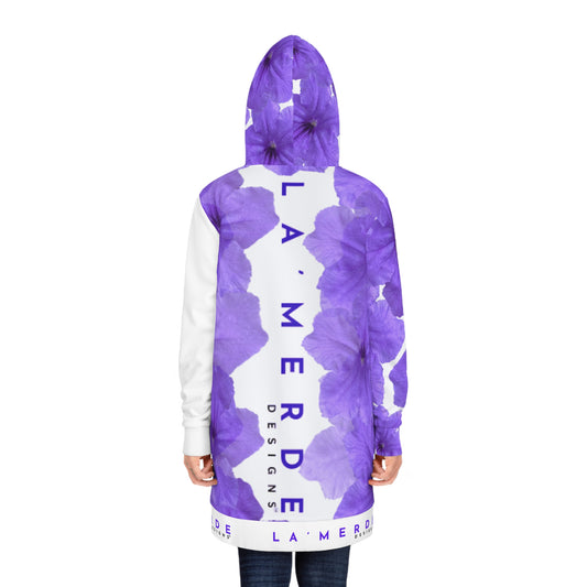 Regular price $120.00 USDRegular priceUnit price / perSale price $120.00 USDLong Sleeve Hoodie Mini Dress: Watercolor Purple Ruellia Tuberosa
