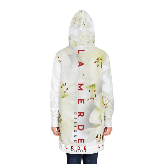 Long Sleeve Hoodie Mini Dress: Watercolor Day Lily