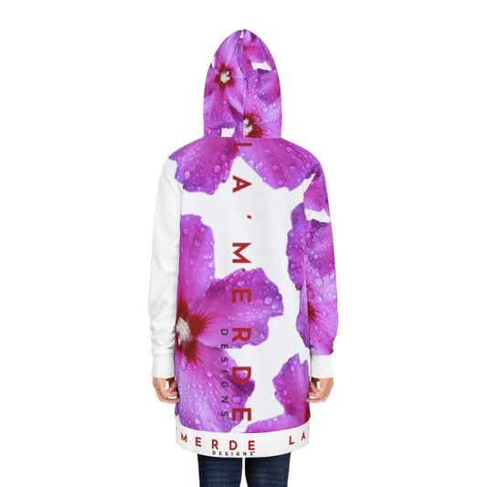 Long Sleeve Hoodie Mini Dress: Brilliant Purple and Red Hibiscus Syriacus L