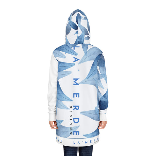 Long Sleeve Hoodie Mini Dress: Watercolor Blue Leaf Seaweed