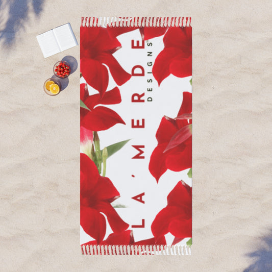 Boho Beach Blanket: Brilliant Red Tropical Hibiscus