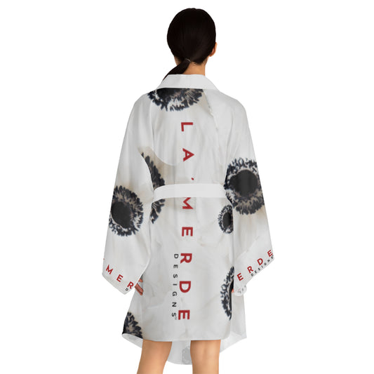 Chic Kimono Style Robe Japanese Inspired: Watercolor Black and White Anemone Carmel