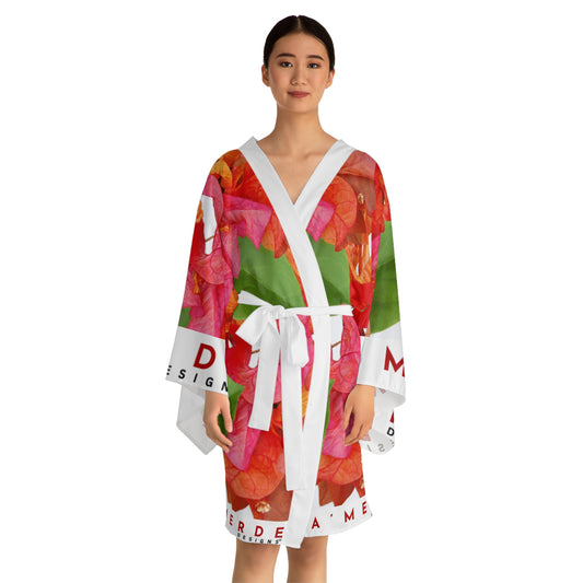 Chic Kimono Style Robe Japanese Inspired: Brilliant Red, Pink & Orange Bougainvillea