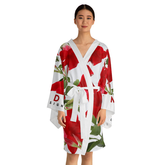 Chic Kimono Style Robe Japanese Inspired: Watercolor White Day Lilly